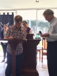 Sunday Dec. 11, Lakewood UCC received 2 new members into the church family. Wally LeBlanc joined the church. He lives across the street from the church and is transferring his membership from Church of the Isles, Indian Rocks Beach. Wally’s sponsor was Preston Poe. The second new member was Emily Gibson. Emily started coming to LUCC when she was about 3. Now, she joins the church as an adult. Emily’s sponsor is Dana Cosper. Rev. Kim Wells was assisted in the liturgy by Advisor Charlie Lewis. The church is blessed to welcome these wonderful new members!