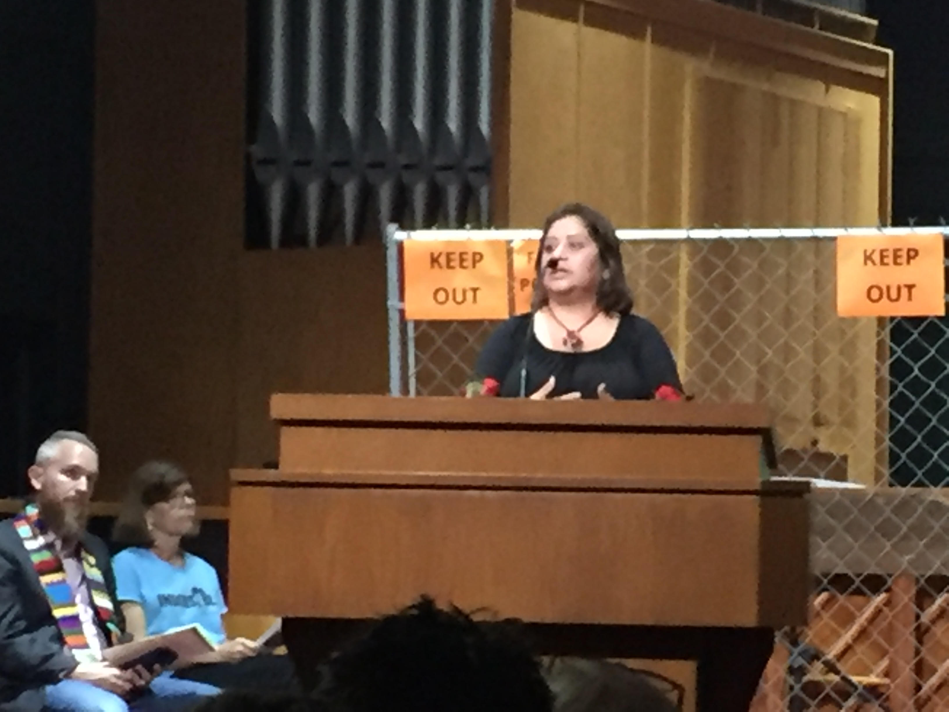 And then the children’s’ voices of fear, hunger, pain, and suffering came forth as readers voices came forward from behind the fence, positioned behind the altar. This fence symbolized the cages at the detention facilities that entrap and separate the children from their families and their freedom. These voices were horrifying.