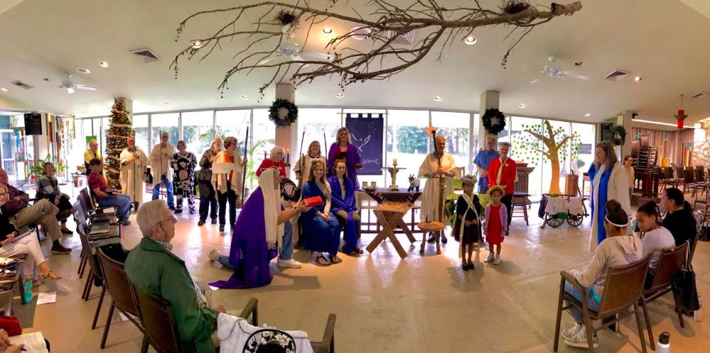 On the Sunday before Christmas, the congregation participated in creating an impromptu nativity scene complete with three Marys and a woman Joseph. Much fun.