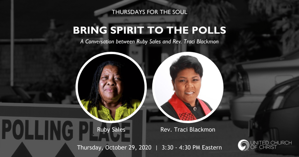 Rev. Traci Blackmon and Civil Rights Leader Ruby Sales speak together about activism, then and now, and voter suppression tactics. Ruby Sales is an historian, Griot, and Member of the Student Nonviolent Coordinating Committee (SNCC) and the founder of Spirit House Project, a national 501(c)3 non-profit organization that uses the arts, research, education, action, and spirituality to bring diverse peoples together to work for racial, economic, and social justice, as well as for spiritual maturity. We will also play a video from Trinity UCC and Otis Moss III and his family about their work for voters’ rights.