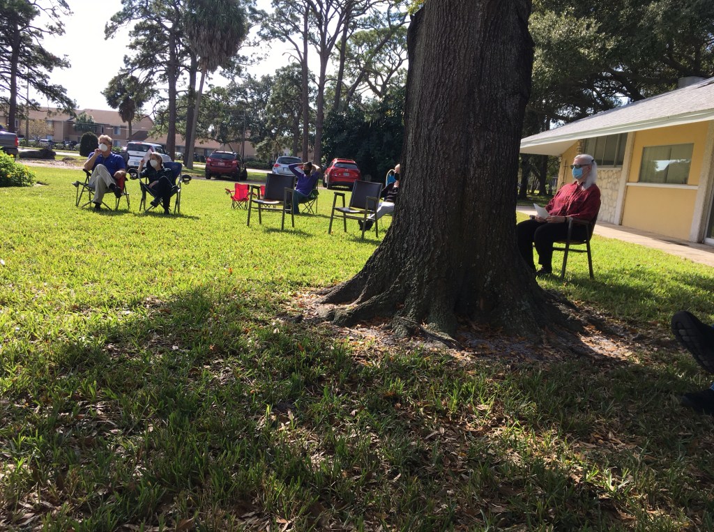 Another beautiful Sunday morning for worship out on the lawn of the church. There will be another Sunday morning outdoor service Dec. 20 at 10:30. There will also be an outdoor service on Christmas Eve at 7:00 p.m. Bring your own chair if you can. Masks and distancing required. All welcome!