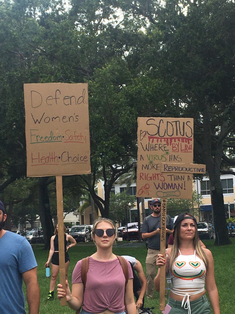 Several people from the LUCC family took part in the demonstration in North Straub Park in downtown St. Petersburg on Friday June 24, the day the Supreme Court decision overturning Roe v. Wade was announced. Jim Andrews, Janet Blair, Zoe Blair-Andrews, and Rev. Kim Wells were among those protesting the decision and supporting the healthcare rights of women. Here are some pictures from the demonstration.