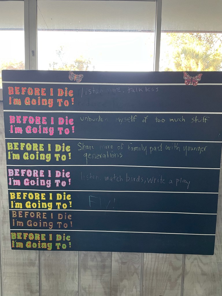 The boards with the unfinished sentence, ‘Before I die I am going to. . . ‘ were displayed. Here is the response: