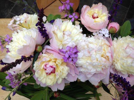 Two beautiful peony bouquets; flowers grown and arranged by their cousins.
