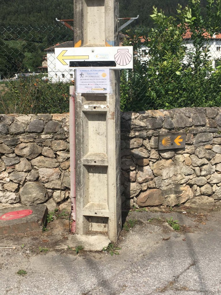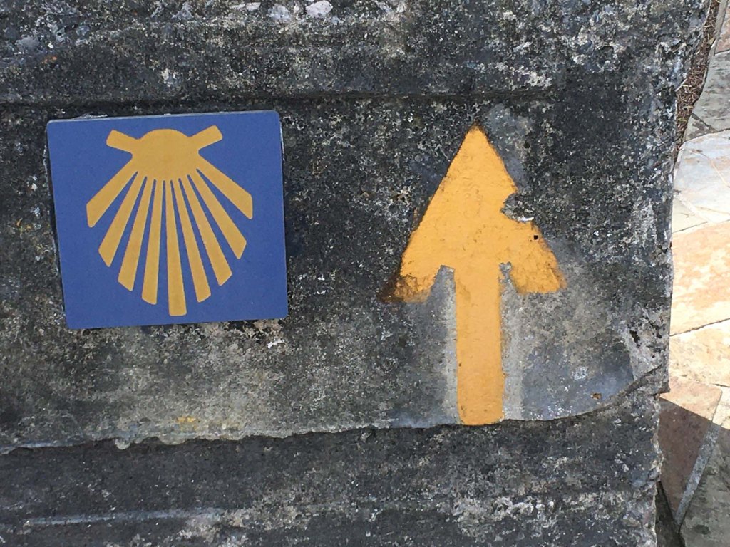 Signs with yellow arrows, sometimes with the scallop shell, mark the Camino in Spain. So, each day, all day, we follow the yellow arrows. — Rev. Kim